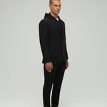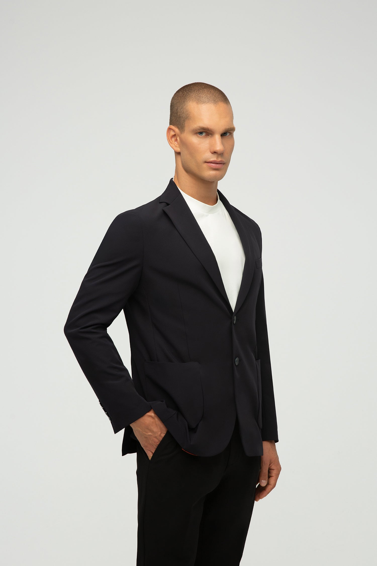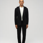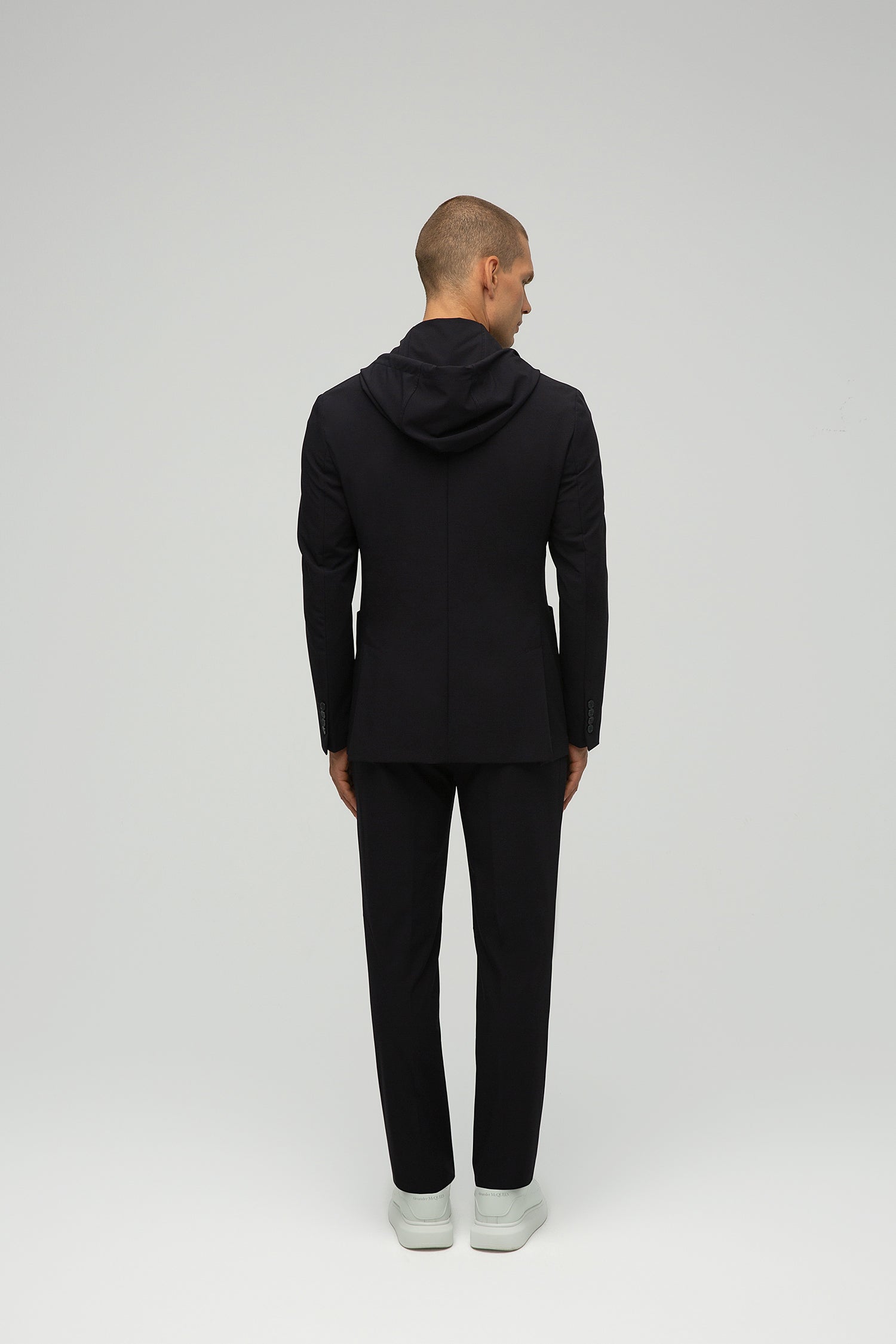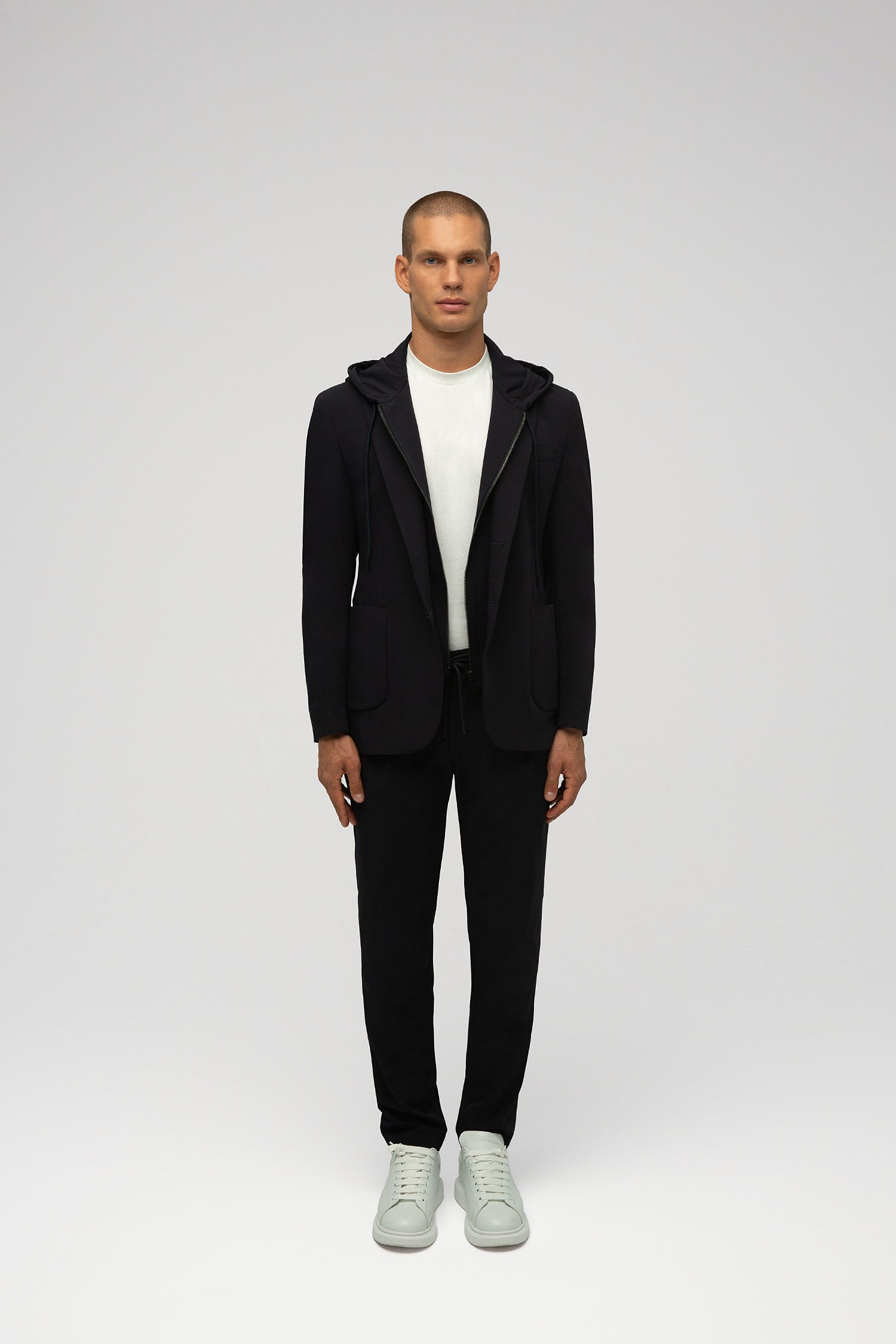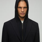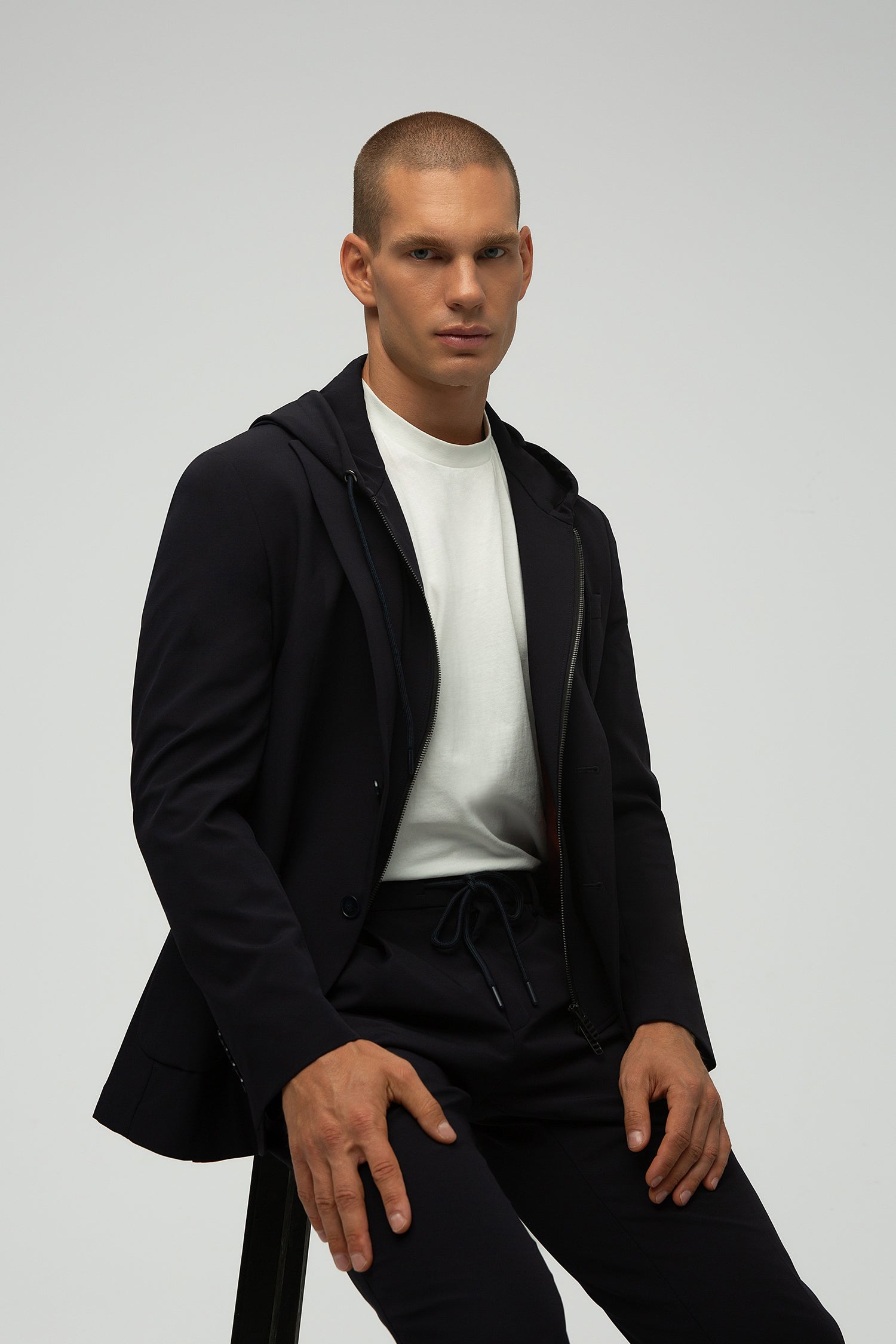 Modern bireylerin hem işlevsellik hem de stil taleplerini karşılamak üzere tasarlanan bu çok yönlü ceket, fermuarla çıkarılabilen kapüşonu sayesinde sportif ve gündelik bir parçadan zarif ve şık bir blazer cekete dönüşüyor. Kırışıklık karşıtı teknik kumaş ve punto dikişlerle tasarlanmış olup, olağanüstü konfor, esneklik ve dayanıklılık sunar. Yarım astarı, form ve hareket özgürlüğü arasında mükemmel bir denge sağlar.