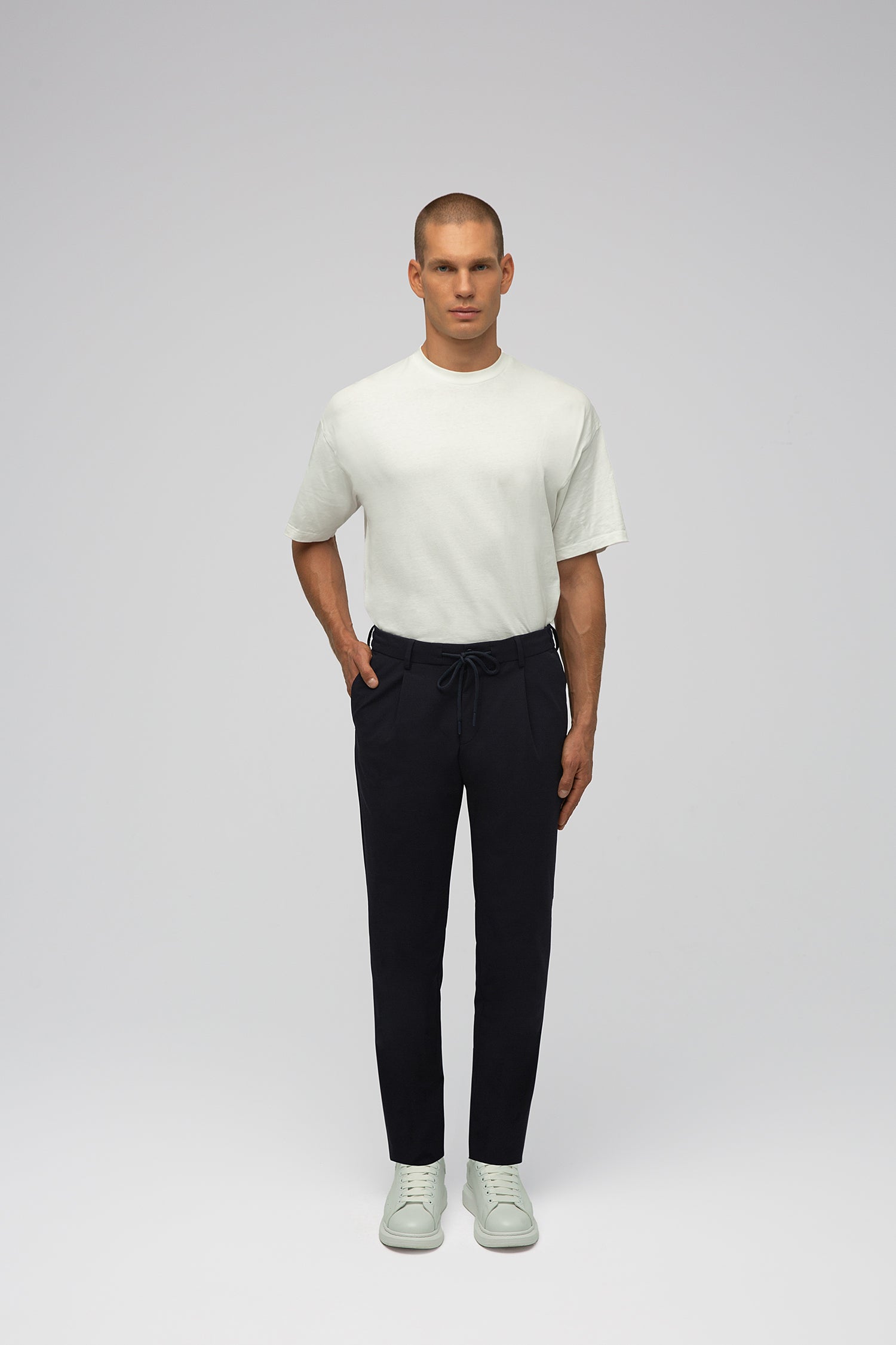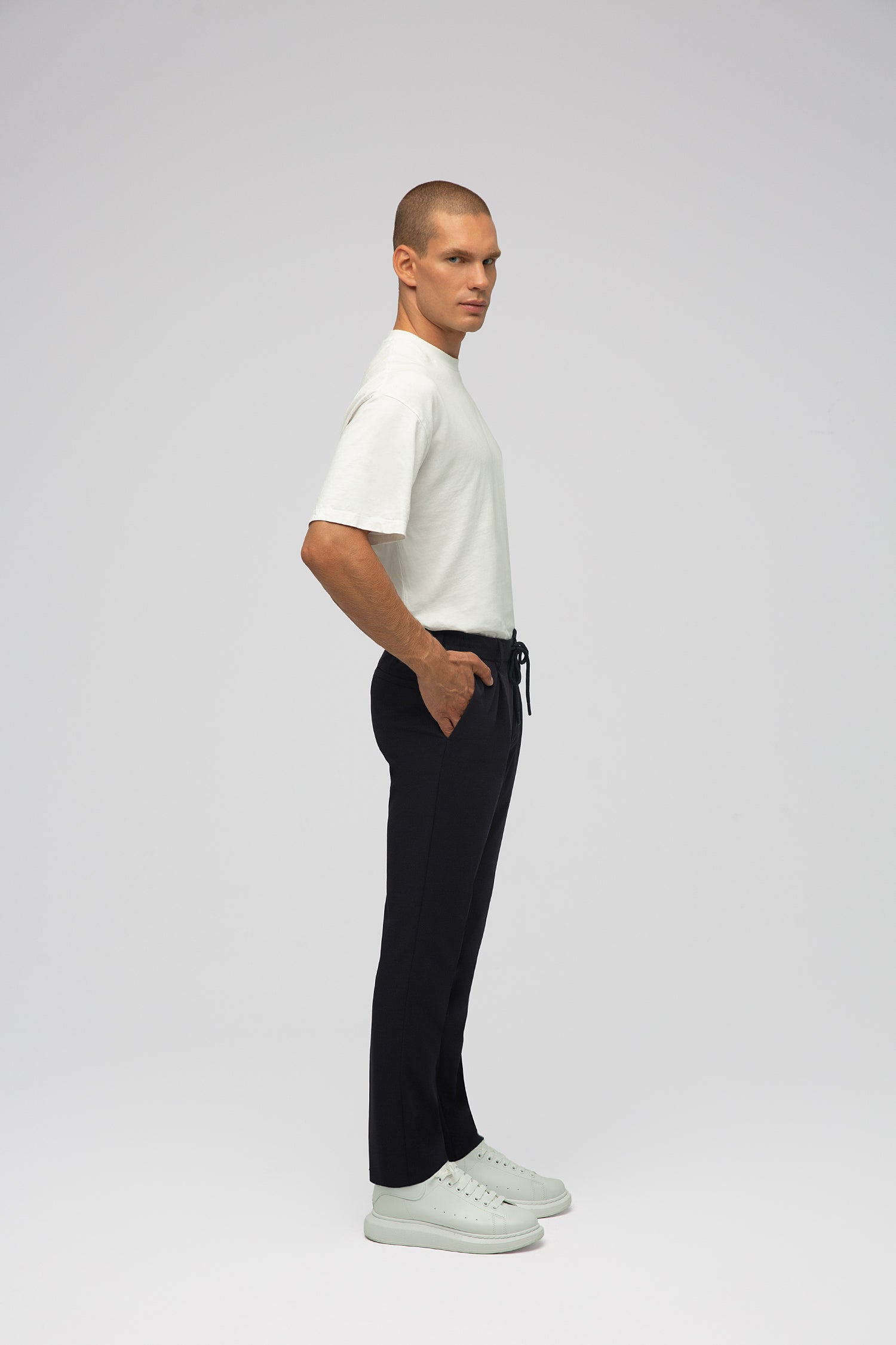 Konfor ve stilin mükemmel uyumunu arayanlar için tasarlanan bu parça, hareket özgürlüğü, dayanıklılık ve esneklik sağlayan yüksek performanslı, kırışıklık karşıtı teknik kumaştan üretilmiştir. Ayarlanabilir bağcıklarıyla kişiye özel uyum sunan lastikli bel bandıyla ve şıklığı bozmadan pratiklik sağlayan gizli cepler ile donatılmıştır. Hem gündelik hem de profesyonel ortamlara uygun olup modern bir görünüm sunar.
