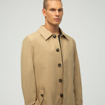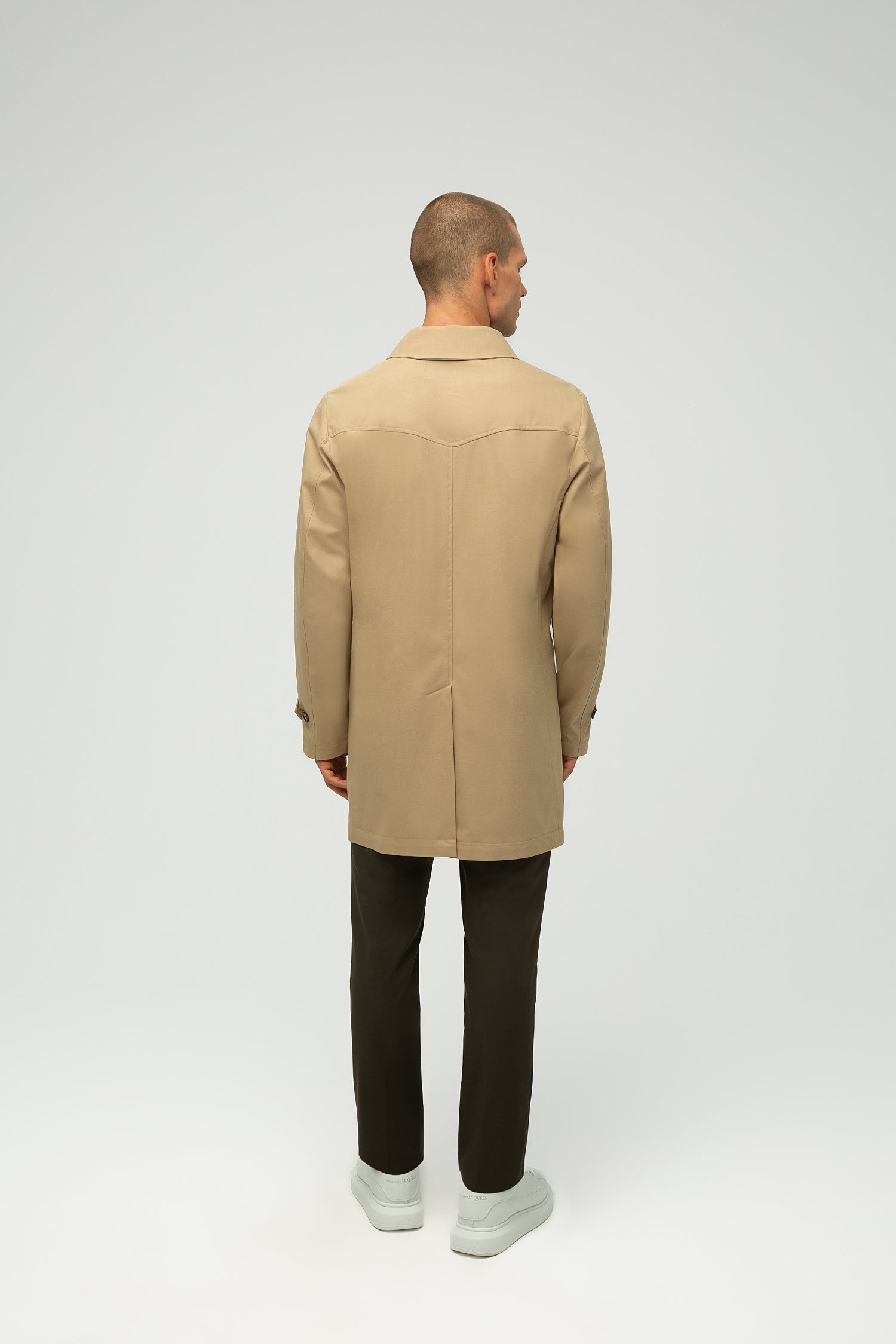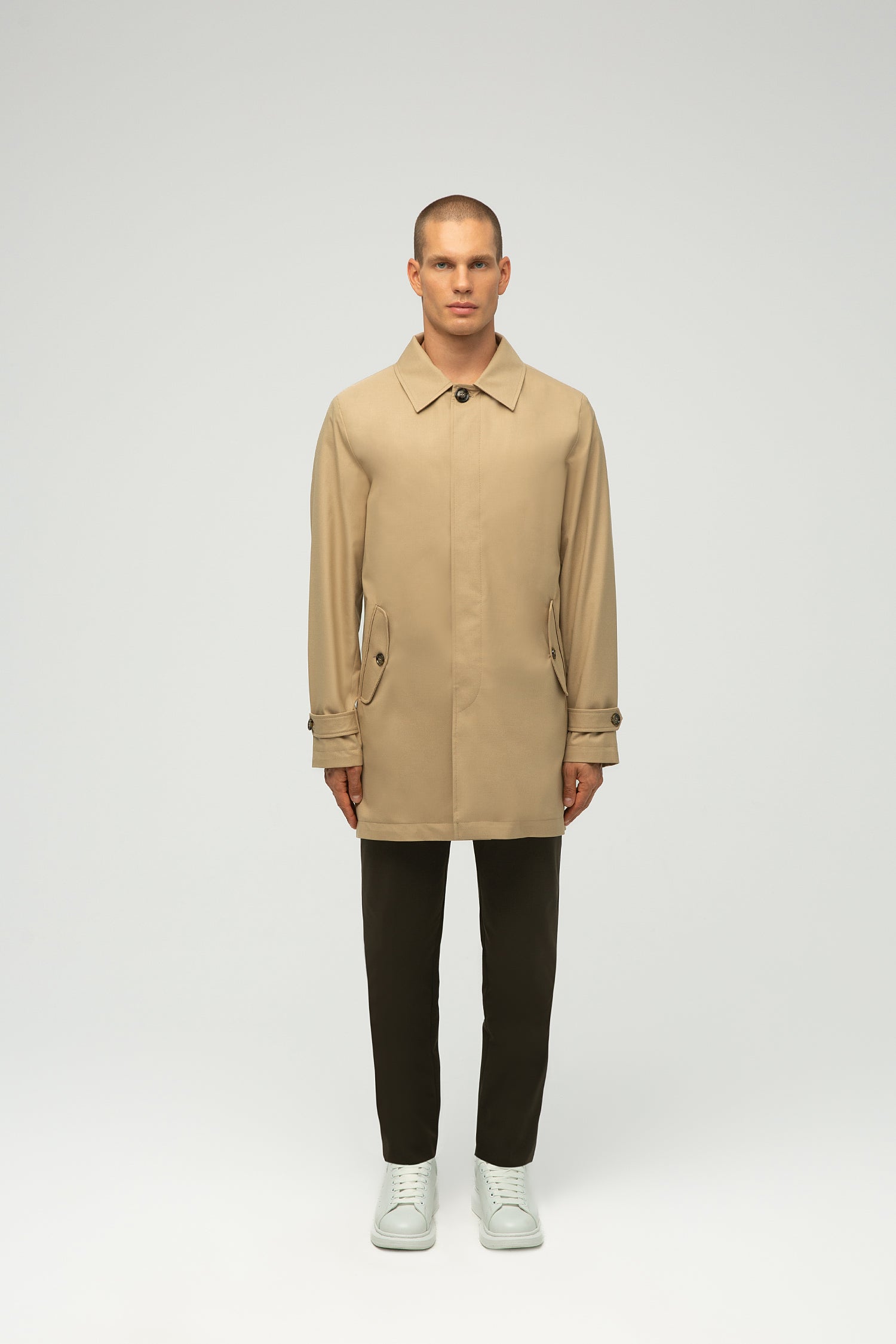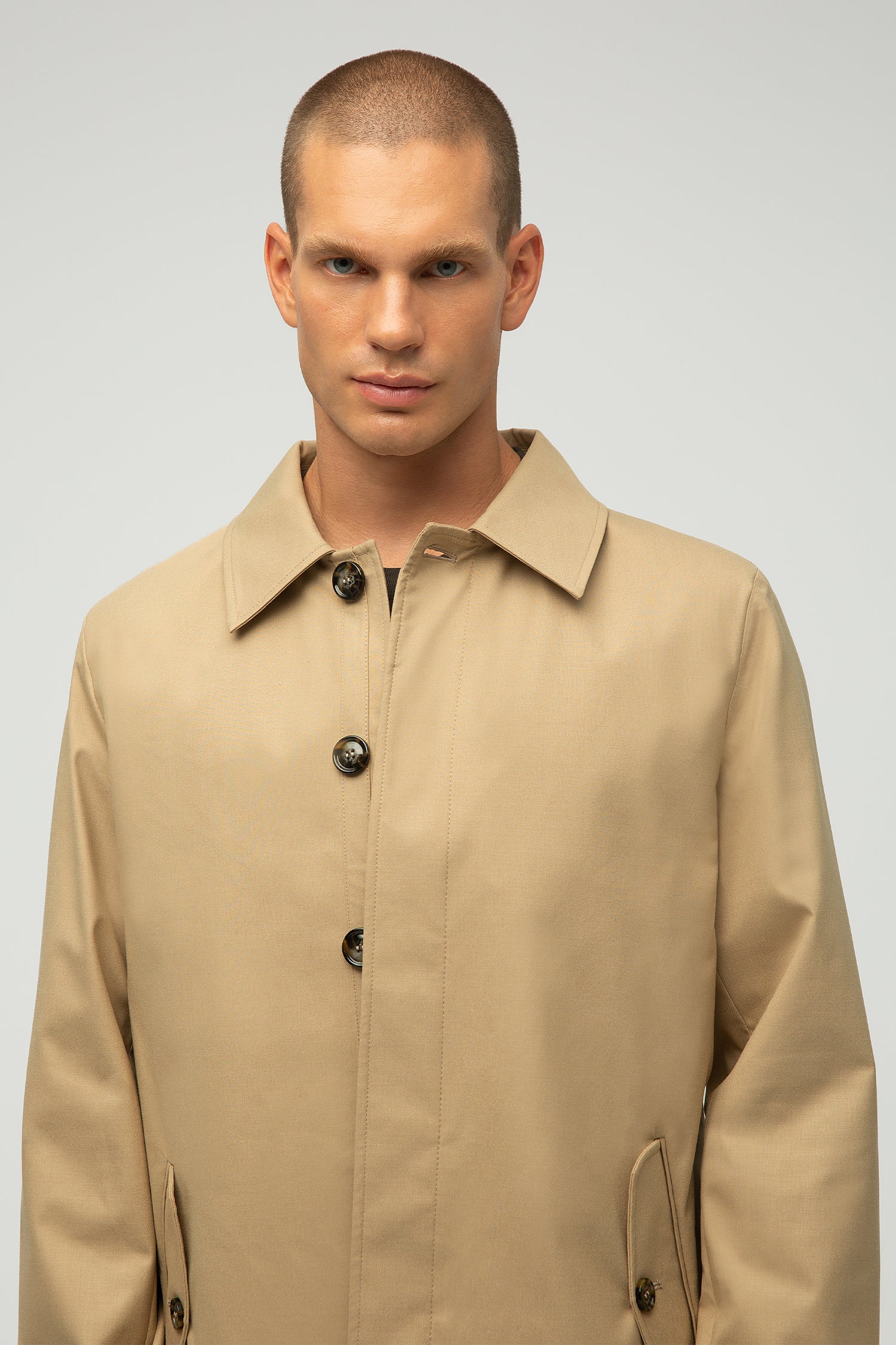 Şık tasarımıyla kısa trençkot, üstün teknik kumaş karışımından üretilmiştir ve olağanüstü konfor, esneklik ve dayanıklılık sunar. Su itici özelliklere sahip olarak tasarlanmıştır. Klasik bir görünüm için tam düğmeli kapanış, düğmeli manşetler ve eğik kapaklı cepler ile donatılmıştır. Hareket kolaylığı sağlayan üst üste binen arka yırtmaç içerir. Zamansız stil ile modern işlevselliği birleştirerek hem gündelik geziler hem de resmi davetler için mükemmeldir.