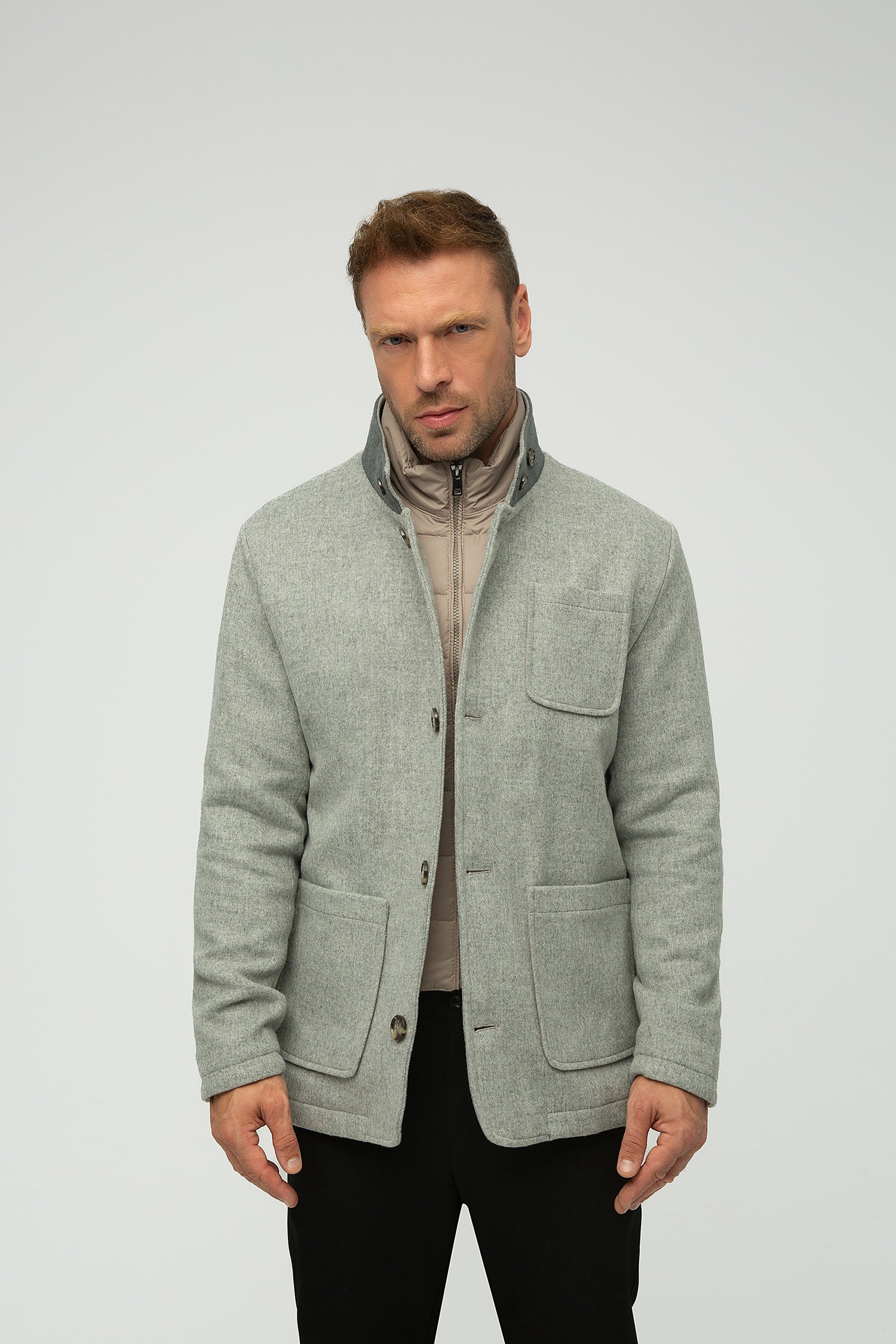 Eşsiz tasarımlı yün karışımlı mont, çıkarılabilir iç yarım ceketle birlikte farklı stillerde kullanım sağlar ve ek sıcaklık sunar. Ön kısımdaki görünür düğmeler ve yaka uçlarındaki kontrast renkle yüksek dik yaka sofistike bir dokunuş katar. Tam düğmeli kapanışa, üç büyük yama cebe ve kollardaki kapitone dirsek yamalarına sahiptir. Dış mekan aktiviteleri, profesyonel ortamlar ve sosyal etkinlikler için mükemmeldir, zarafeti ve işlevselliği bir araya getirir.