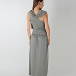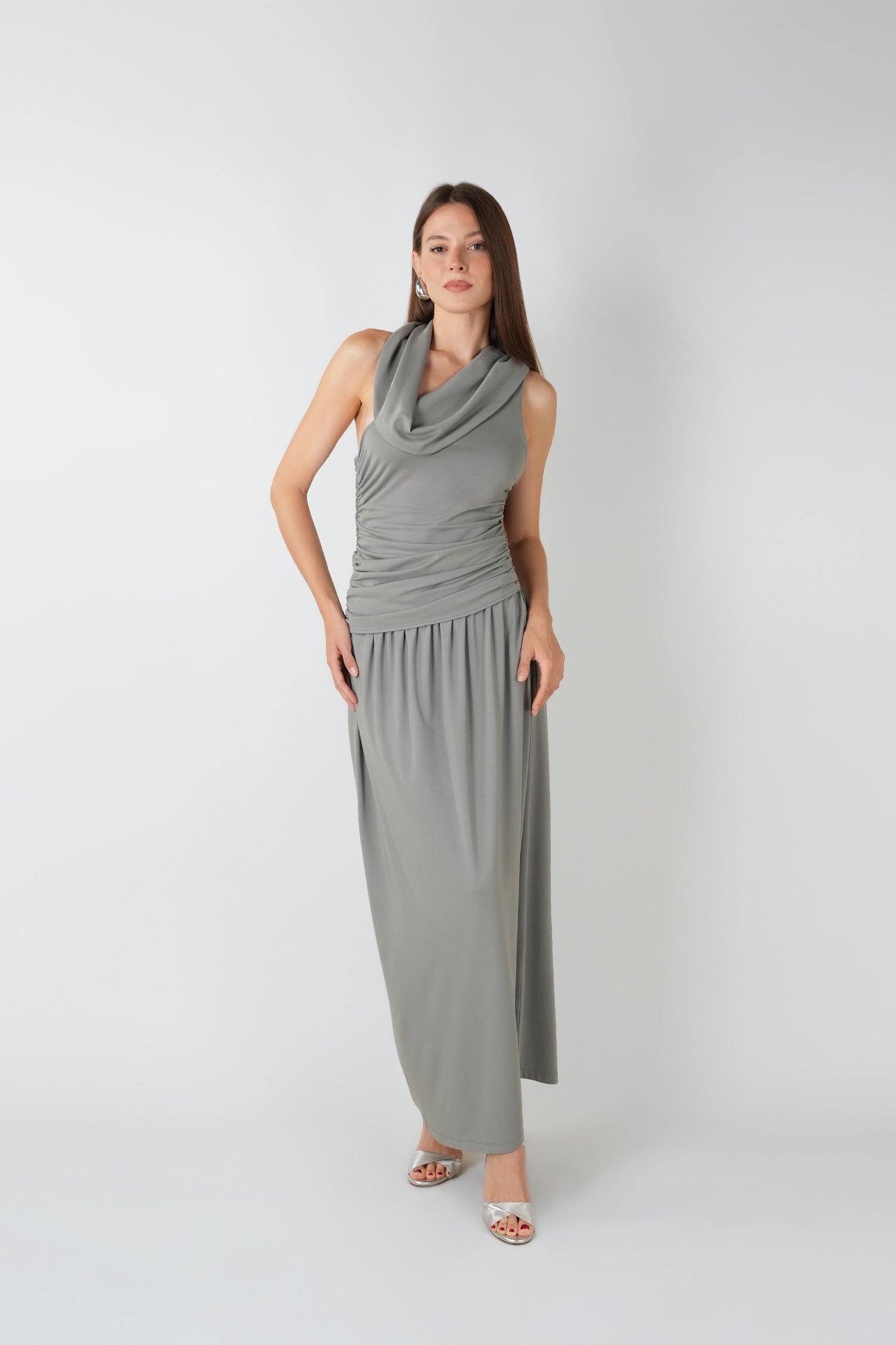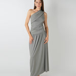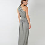 Asimetrik tek omuz tasarımıyla modern ve güçlü bir duruş sunan bu elbise, vücudu bele kadar saran yapısıyla feminen hatları zarifçe vurgular. Belden itibaren dökümlü ve bol kesimiyle hem hareket özgürlüğü hem de akıcı bir siluet sağlar. Ultra hafif kumaşıyla gün boyu konfor sunan bu tasarım, boyun çevresinden geçen bağlama detayının göğüs çevresine alınmasıyla iki farklı stilde kullanılabilir. Tek parçada iki görünüm sunarak gardırobun en çok yönlü parçalarından biri olmaya aday.