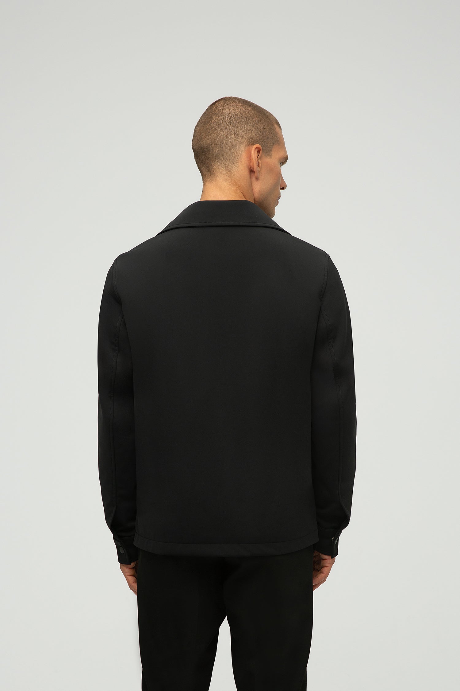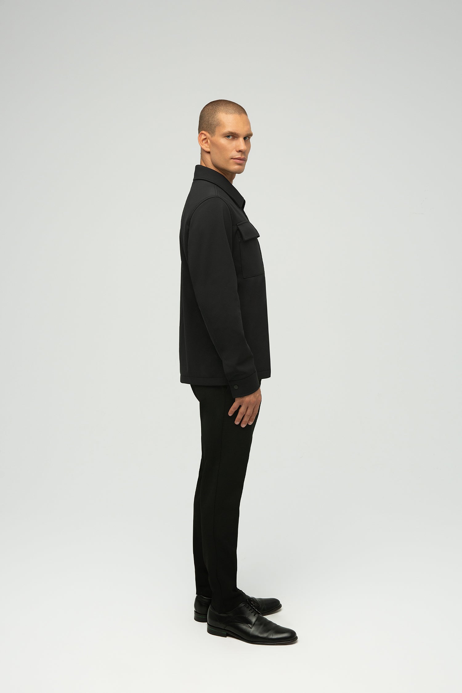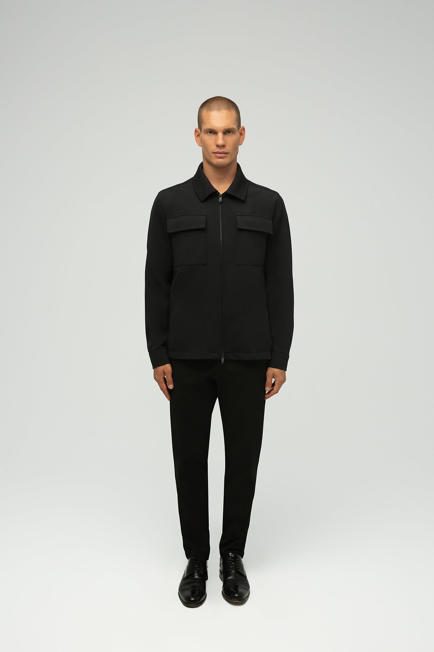 Designed from technical fabric, provides crease resistance and flexibility for everyday wear. Featuring a sleek design with a full zip closure and dual zipper pulls for versatile styling and ease of wear. Two large chest pockets with flaps and hidden side pockets provide ample storage space, while the collar adds a touch of sophistication. The stretch pongee lining ensures additional flexibility and comfort.